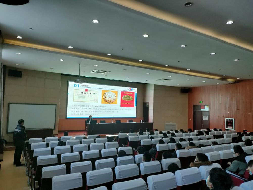 会上,公司领导高主任介绍了公司资质、主营业务、典型业绩以及同学们的薪资待遇,并且重点介绍了所招聘岗位的具体工作内容、工作性质、以及职业生涯规划。
