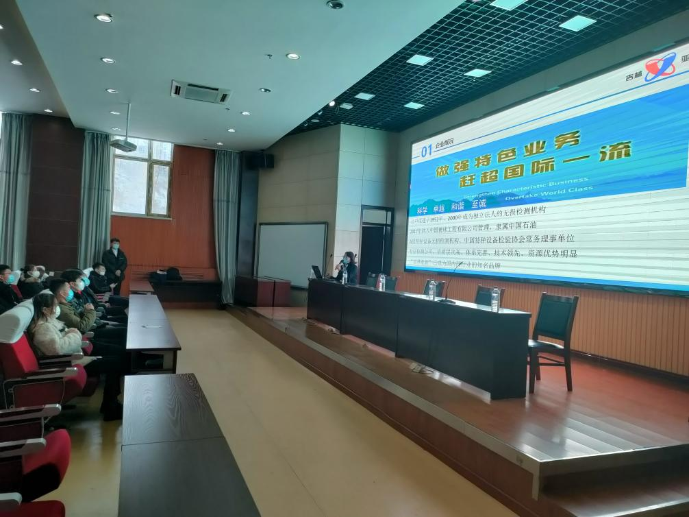 为深入贯彻省委省政府人才兴省战略决策部署、贯彻落实“省委书记发出邀请——创业有你,就在吉林”报告会精神。2021年11月24日,吉林亚新工程检测有限公司在我院成功举办宣讲会。
