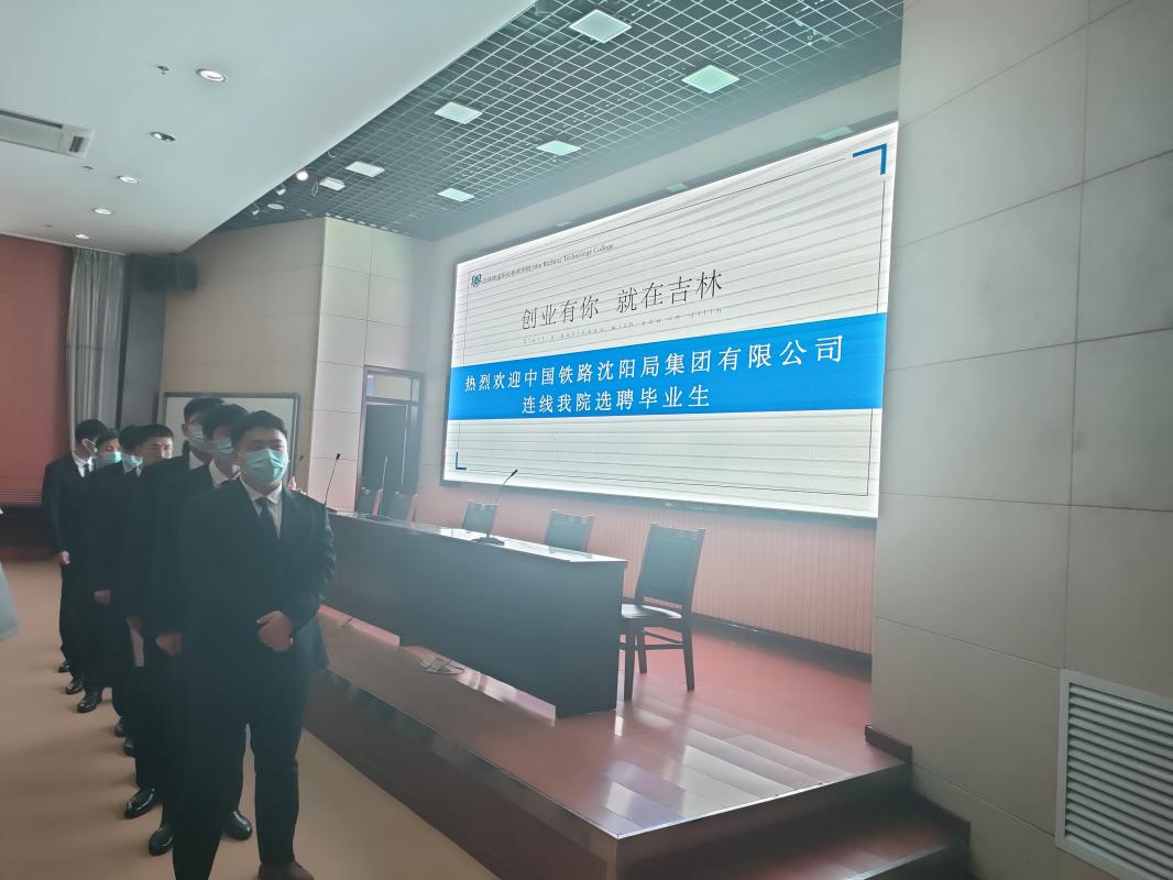 就业招生处依照疫情防控要求和沈阳铁路局面试需求,严格布置面试现场,在确保防控规定的前提下,有序组织学生进行线上面试,保障了就业工作的正常进行。
