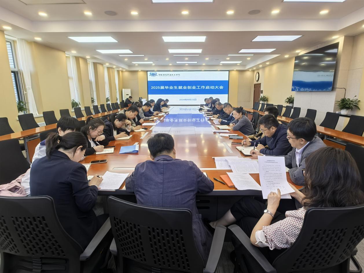 9月23日下午,我校在行政楼第二会议室召开了2025届毕业生就业创业工作启动大会。副校长李欣出席会议,各学院党总支书记、院长、党总支副书记、招生就业处及相关职能部门负责人参加了会议。会议由招生就业处处长韩兵兵主持。