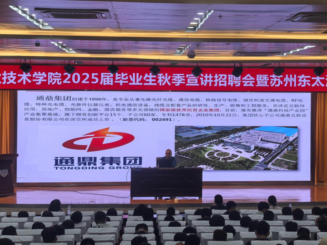 随着新学期的钟声敲响,学校举办了本学期首场招聘会——苏州东太湖区专场招聘会,此次招聘会吸引了10余家企业参与,包括通鼎集团有限公司、超美斯新材料股份有限公司、苏州彤帆智能科技有限公司、吴江变压器有限公司、佳禾食品工业股份有限公司、江苏富威科技有限公司、苏州福奥克机械有限公司、苏州亚德林股份有限公司、苏州市艾西依钣金制造有限公司和苏州顶津食品有限公司,本次招聘会提供了多样化的岗位选择,旨在帮助学生更好地规划职业生涯,顺利实现从校园到职场的过渡。