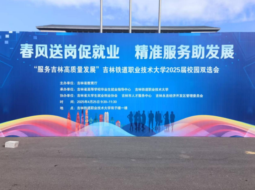 4月25日上午,由吉林省教育厅主办,吉林省高等学校毕业生就业指导中心、吉林铁道职业技术大学承办,吉林省大学生就业创业协会、吉林市人才服务中心、吉林永吉经济开发区管理委员会共同协办的“春风送岗促就业,精准服务助发展,服务吉林高质量发展——吉林铁道职业技术大学2025届毕业生春季校园招聘会”在我校举办。