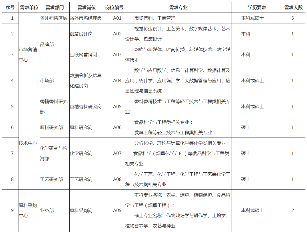 本次招聘范围为福建中烟市场营销中心、技术中心、原料采购中心及下属龙烟公司和厦烟公司。现竭诚欢迎优秀应届高校毕业生加盟福建中烟。具体招聘信息如下: