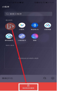 2) 如进入后显示为其他学校就业小程序,说明您可能关注过其他学校小程序,请在微信沟通列表中下拉,删除慧就业小程序(长按慧就业小程序,拖拽至垃圾箱,如下图所示)后从微信公众账号重新进入小程序。