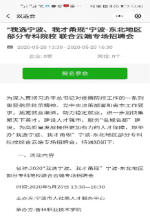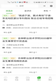 1. 主办方吉林职业技术学院报名与参会:在本校双选会列表中点击本场双选会进入详情,点击“报名参会”button报名或在线入场参会