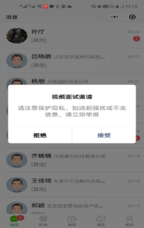 视频面试由企业端发起,学生可以发送文字,邀请HR发起视频面试。双选会期间请不用退出小程序,以免错过HR发起的视频面试邀请。收到面试邀请后,点击“接受”,即可进入视频页面,参会期间摄像头和麦克风请保持开启状态。