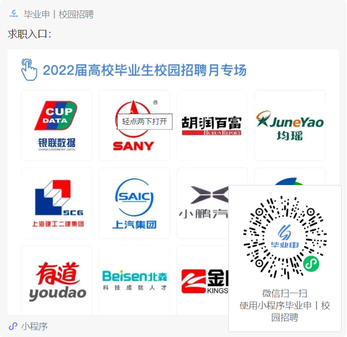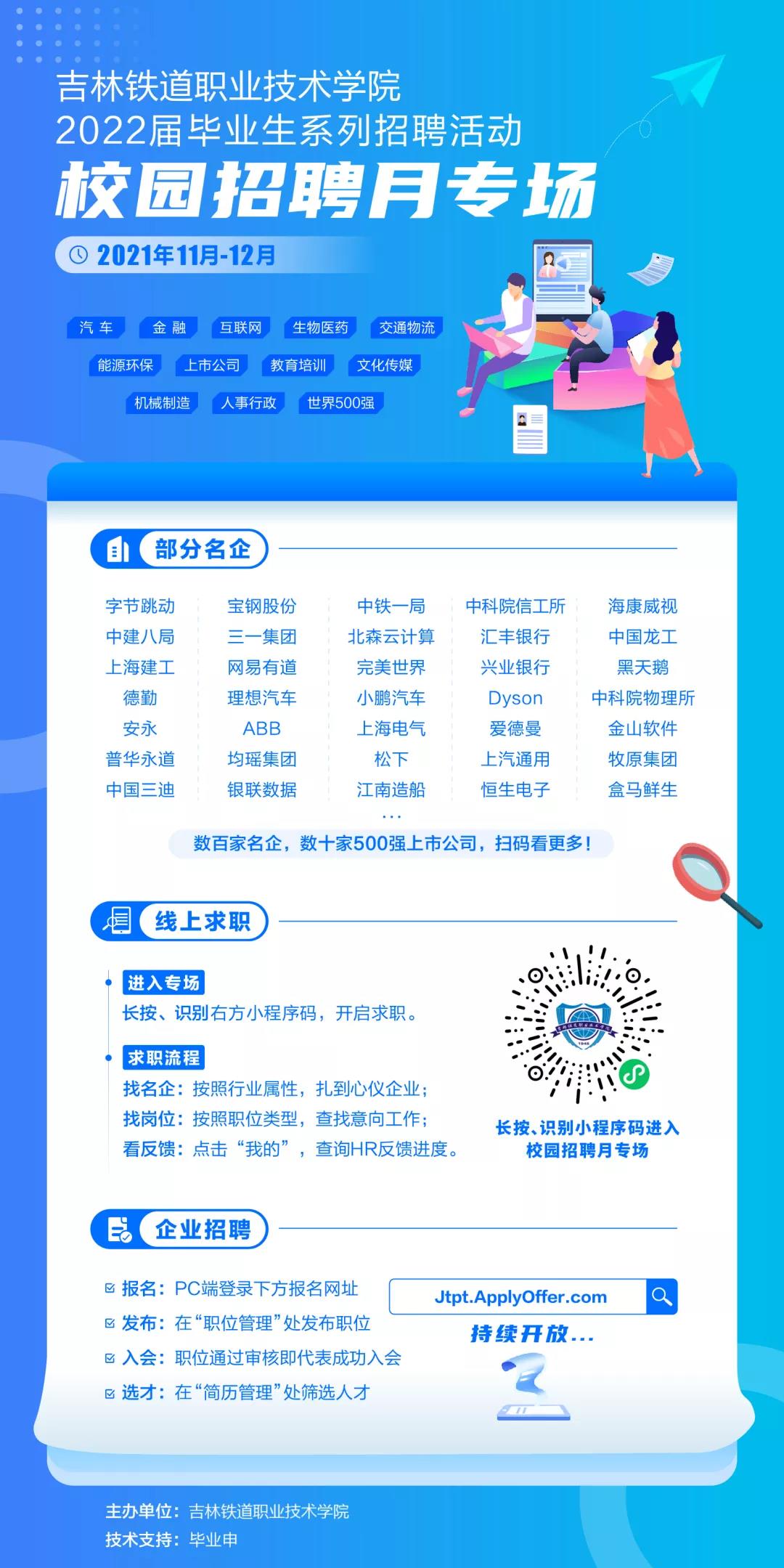 找名企:按照行业属性,搜索心仪企业; 找岗位:按照职位类型,查找意向工作; 看反馈:点击“我的”,查询HR反馈进度;