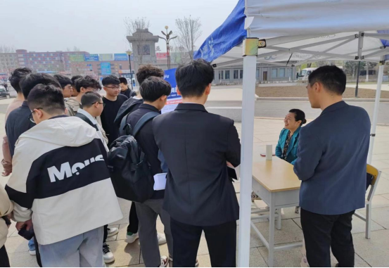 双选会现场人头攒动,学生们踊跃参与,积极与企业代表进行面对面交流。各企业代表详细地向学生介绍自身企业文化、发展前景和招聘需求,吸引了大批学生前来咨询和投递简历、洽谈对接。此外,为方便各用人单位和应聘毕业生进行供需洽谈,学校采取志愿者与单位“一对一”精准贴心服务,为用人单位提供全方位后勤服务。